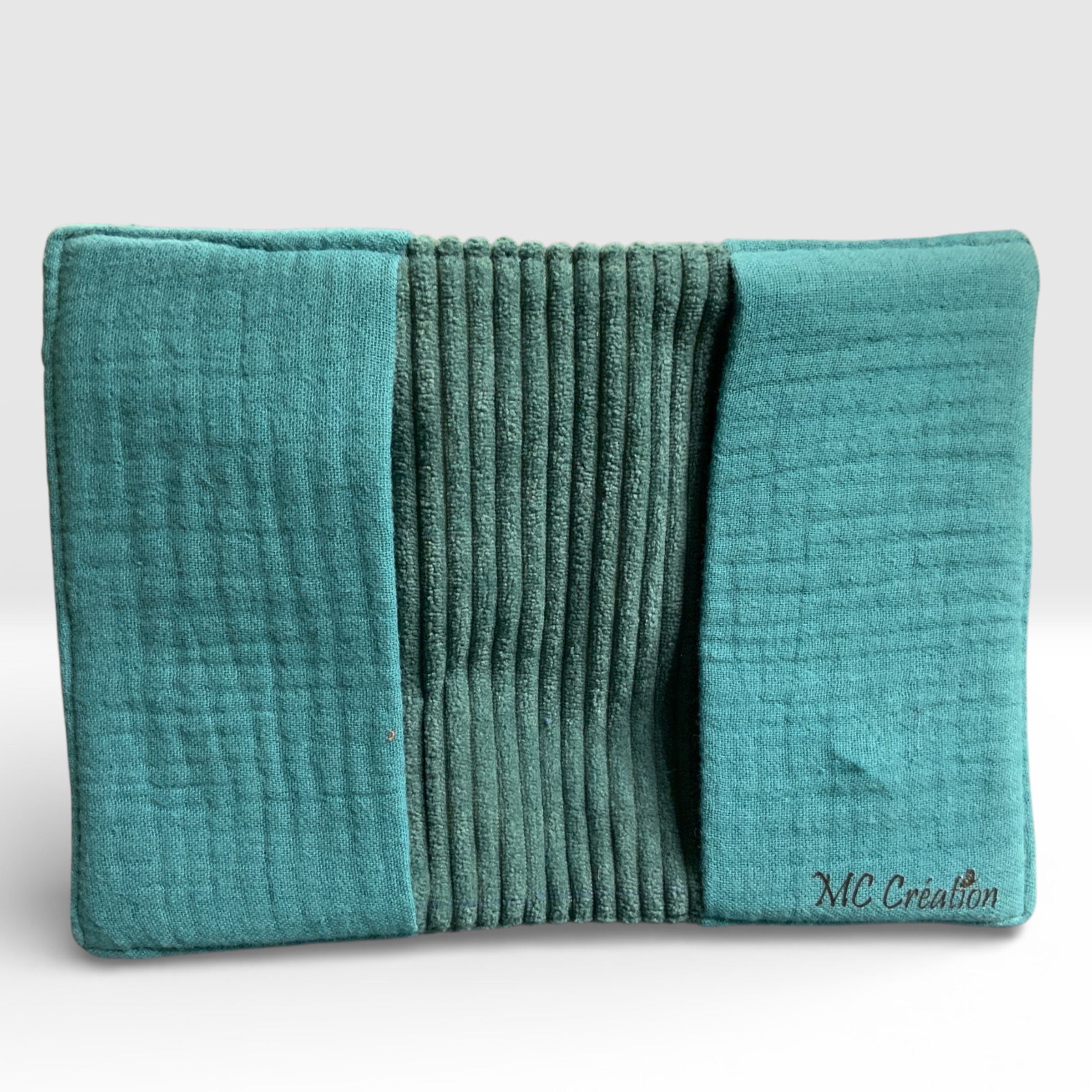En velours côtelé bleu canard, tissus extérieur et doublée coton uni assorti au velours extérieur.